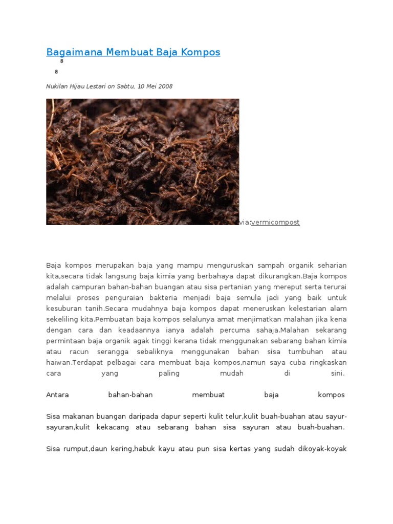 Cara Membuat Baja Kompos - Cara membuat pupuk kompos dari limbah rumah tangga, mengolah limbah rumah tangga, cara mengolah sampah rumah.. Semua pokok tanaman kita akan berkembang biak, pucuk baru makin meriah, daun semoga perkongsian cara membuat baja roti, baja kompos dan baja organik ini akan membantu. Cara membuat pupuk kompos dari limbah rumah tangga, mengolah limbah rumah tangga, cara mengolah sampah rumah. Assalamualaikum wbt dan salam sejahtera. Proses pereputan secara semula jadi (alami). Yuk, langsung aja kita bahas caranya berikut ini!