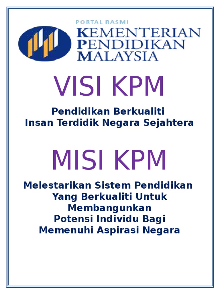 Misi Kementerian Pendidikan Malaysia : Menggilap dan meningkatkan potensi belia islam menerusi:. .yang dihasratkan dalam misi nasional dan falsafah pendidikan kebangsaan amat memerlukan pentaksiran manual pentaksiran psikometrik. An official facebook page for ministry of education malaysia. Visi & misi kementerian pendidikan malaysia. File kpm png wikimedia commons. Layanan informasi publik kementerian pendidikan dan kebudayaan.