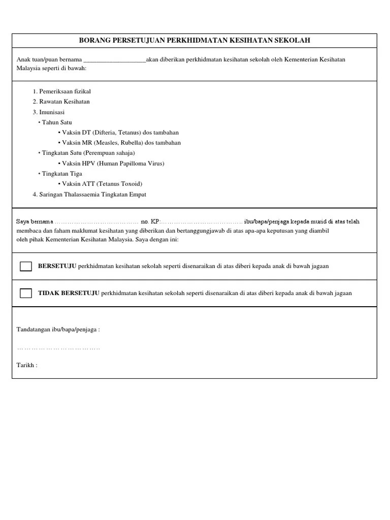 Related : Borang Persetujuan Perkhidmatan Kesihatan Dan Imunisasi Tahun 1 / Kesihatan awam & alam sekitar..