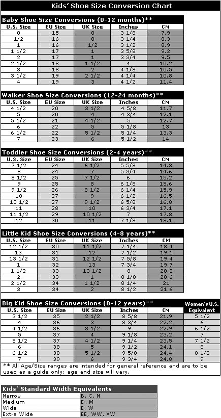 Find conversions for all shoe sizes